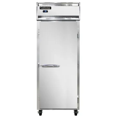 Enhance the heart of your restaurant with the Continental Refrigerator, 1FESNSA, Freezer, Reach-In. This extra-wide freezer is designed to meet the demands of a busy commercial kitchen. With its shallow depth and full-height solid door, it provides ample storage space while saving valuable floor space. The stainless steel exterior and aluminum interior ensure durability and easy cleaning, while the electronic control with digital display allows for precise temperature management. The hi-low alarm alerts you if the temperature goes outside the desired range, ensuring the safety of your food. The electric condensate evaporator eliminates the need for manual defrosting, saving you time and effort. With a 1/3 HP compressor, this freezer delivers reliable performance and energy efficiency. Made in the USA and certified by cETLus and NSF, you can trust the quality and safety of this Continental Refrigerator. Upgrade your restaurant's storage capabilities with the 1FESNSA Freezer, Reach-In.