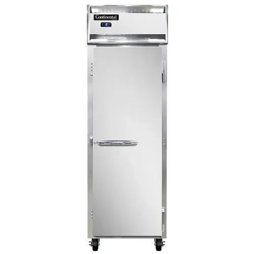 Equip your commercial kitchen with the Continental Refrigerator 1FNSA Freezer Reach-In. This one-section freezer offers a spacious 20 cu. ft. capacity, making it perfect for storing a large quantity of frozen goods in a commercial restaurant setting. The self-contained refrigeration system ensures efficient cooling, while the stainless steel exterior and aluminum interior provide durability and easy cleaning. The full-height door allows for easy access to the contents, and the electronic control with a digital display allows for precise temperature management. The hi-low alarm alerts you if the temperature goes outside the desired range, ensuring the safety of your food. Additionally, the electric condensate evaporator eliminates the need for manual defrosting. With its 1/3 HP motor, cETLus and NSF certifications, and reliable performance, the Continental Refrigerator 1FNSA is a must-have for any commercial kitchen.