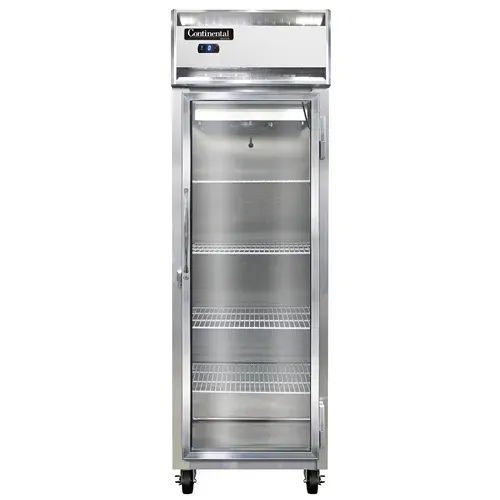 Cooking at its finest begins with the Continental Refrigerator, 1FSNSSGD Freezer, Reach-In. This top-of-the-line freezer is designed to meet the demands of a busy commercial restaurant. With its stainless steel exterior and interior, it not only looks sleek but is also durable and easy to clean. The shallow depth and narrow hinged glass door make it perfect for tight spaces, while the self-contained refrigeration system ensures optimal temperature control. The electronic control with a digital display allows for precise adjustments, and the hi-low alarm alerts you if the temperature goes outside the desired range. With a powerful 1/2 HP compressor, this freezer can handle the toughest cooling tasks. Made in the USA and certified by cETLus and NSF, you can trust the Continental Refrigerator, 1FSNSSGD to deliver exceptional performance and reliability in your commercial kitchen.