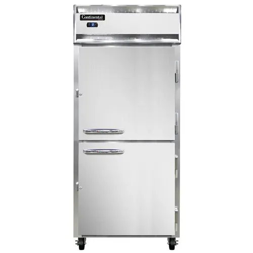 Cooking at its finest begins with the Continental Refrigerator 1FXSNHD Freezer. This extra-wide reach-in freezer is designed to meet the demands of a commercial restaurant kitchen. With its shallow depth and half-height solid doors, it provides easy access to frozen ingredients while maximizing space efficiency. The stainless steel front and aluminum interior ensure durability and easy cleaning, while the electronic control with a digital display allows for precise temperature management. The hi-low alarm alerts staff if the temperature deviates from the desired range, ensuring food safety. The electric condensate evaporator eliminates the need for manual defrosting, saving time and effort. Powered by a 1/2 HP compressor, this freezer is capable of maintaining consistent temperatures even in high-demand environments. Made in the USA and certified by cETLus and NSF, the Continental Refrigerator 1FXSNHD is a reliable and efficient freezer that will enhance the functionality of any commercial kitchen.