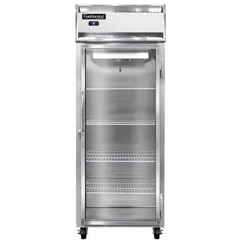 Elevate your culinary experience with the Continental Refrigerator, 1RESNSAGD. This extra-wide reach-in refrigerator is designed to meet the demands of a commercial restaurant. With its shallow depth and full-height glass door, it offers easy access to your ingredients while adding a touch of elegance to your kitchen. The stainless steel exterior and aluminum interior ensure durability and easy cleaning, while the self-contained refrigeration system provides efficient cooling. The electronic control with a digital display allows you to easily monitor and adjust the temperature, while the hi-low alarm alerts you if there are any fluctuations. Powered by a 1/3 HP motor, this refrigerator is both reliable and energy-efficient. Made in the USA and certified by cETLus and NSF, you can trust the quality and safety of this product. Upgrade your restaurant's refrigeration capabilities with the Continental Refrigerator, 1RESNSAGD.