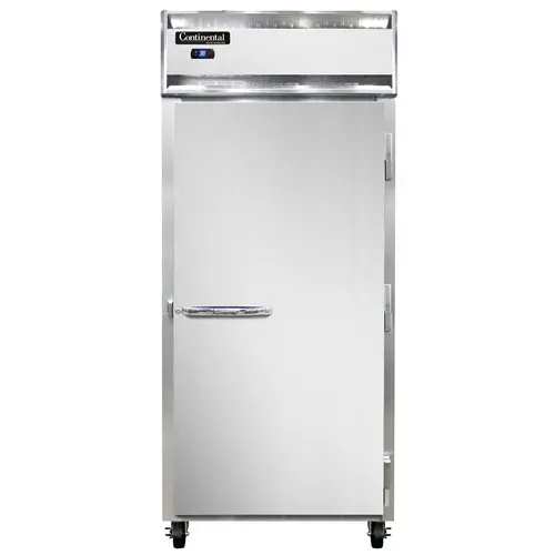 Cook with confidence using the Continental Refrigerator 1RXSNSA Reach-In Refrigerator. This extra-wide, one-section refrigerator is designed specifically for commercial restaurant use. With a shallow depth of 36-1/4"W, it maximizes space efficiency without compromising on storage capacity. The stainless steel exterior and aluminum interior ensure durability and easy cleaning, while the full-height solid door provides secure storage for your ingredients. The electronic control with a digital display allows for precise temperature management, and the hi-low alarm alerts you if the temperature deviates from the set range. Made in the USA and certified by cETLus and NSF, this refrigerator guarantees quality and safety. With a powerful 1/4 HP compressor, it ensures rapid cooling and maintains consistent temperatures. Trust Continental Refrigerator's 1RXSNSA Reach-In Refrigerator to keep your ingredients fresh and your kitchen running smoothly.