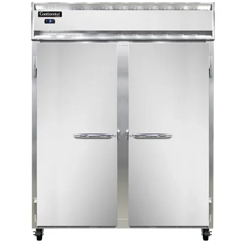 Discover kitchen perfection with the Continental Refrigerator, 2FEN, Freezer, Reach-In. This extra-wide freezer is designed to meet the demands of a commercial restaurant, offering ample storage space and reliable performance. With a width of 57 inches and two sections, this reach-in freezer provides plenty of room to store a wide variety of frozen goods. The stainless steel front and aluminum interior and ends ensure durability and easy cleaning, while the full-height solid doors provide easy access to the contents. The electronic control with a digital display allows for precise temperature management, and the hi-low alarm alerts you if the temperature deviates from the set range. Made in the USA and certified by cETLus and NSF, this freezer is a reliable and efficient addition to any commercial kitchen. Upgrade your restaurant's storage capabilities with the Continental Refrigerator, 2FEN, Freezer, Reach-In.
