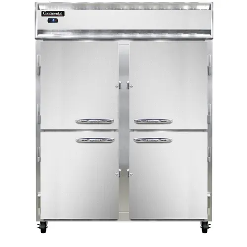 Cook with confidence and flair with the Continental Refrigerator 2FENSSHD Freezer. This extra-wide, two-section reach-in freezer is designed to meet the demands of a busy commercial restaurant. With its stainless steel exterior and interior, it not only looks sleek but is also durable and easy to clean. The half-height solid doors provide easy access to the contents while maintaining temperature control. The electronic control with a digital display allows for precise temperature adjustments, ensuring that your ingredients stay fresh and frozen. The hi-low alarm alerts you if the temperature goes outside the desired range, giving you peace of mind. The electric condensate evaporator eliminates the need for manual defrosting, saving you time and effort. With a 1/2 HP compressor, this freezer is powerful enough to handle the demands of a busy kitchen. Made in the USA and certified by cETLus and NSF, you can trust the quality and reliability of this Continental Refrigerator freezer. Upgrade your restaurant's storage capabilities with the 2FENSSHD Freezer.