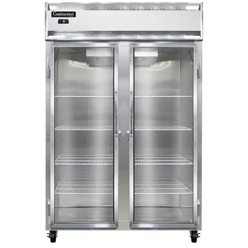 Transform your food service with the Continental Refrigerator, 2FSNGD, Freezer, Reach-In. This two-section freezer is designed to meet the needs of commercial restaurants, offering ample storage space and efficient cooling capabilities. The shallow depth and narrow hinged glass door make it easy to access and display your frozen goods, allowing customers to easily see and choose their desired items. The aluminum exterior and interior ensure durability and easy cleaning, while the stainless steel front adds a sleek and professional look to your establishment. With self-contained refrigeration and electronic control with a digital display, you can easily monitor and adjust the temperature to keep your frozen products at the optimal level. The hi-low alarm alerts you if the temperature goes outside the desired range, ensuring the safety and quality of your food. With a powerful 1 HP motor, this freezer provides reliable and consistent cooling performance. Made in the USA and certified by cETLus and NSF, you can trust the quality and reliability of this Continental Refrigerator. Upgrade your restaurant's freezer with the Continental Refrigerator, 2FSNGD, and experience enhanced efficiency and convenience in your food service operations.