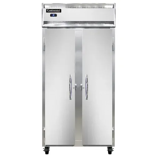 Equip your kitchen for success with the Continental Refrigerator, 2RSEN, Reach-In Refrigerator. This slim line refrigerator is designed to meet the needs of commercial restaurants, ensuring efficient and reliable food storage. With its two-section design and standard depth, this refrigerator provides ample space for storing a variety of ingredients and prepared dishes. The aluminum ends and interior, along with the stainless steel front, not only enhance durability but also make cleaning and maintenance a breeze. The full-height solid doors provide easy access to the contents while keeping them securely sealed. The electronic control with a digital display allows for precise temperature management, while the hi-low alarm alerts you to any fluctuations. The electric condensate evaporator eliminates the need for manual defrosting, saving you time and effort. With its 1/4 HP compressor, this refrigerator delivers powerful cooling performance. Made in the USA and certified by cETLus and NSF, you can trust the quality and reliability of this Continental Refrigerator. Upgrade your kitchen with the 2RSEN Reach-In Refrigerator and experience the convenience and efficiency it brings to your restaurant operations.