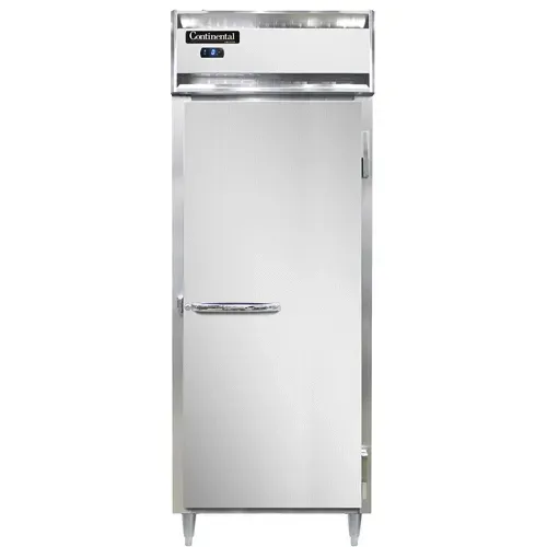 Deliver food perfection with the Continental Refrigerator D1FESNSA Freezer, Reach-In. This designer line wide freezer is the perfect addition to any commercial restaurant. With its shallow depth cabinet and wide full-height solid door, it provides ample storage space while saving valuable floor space. The stainless steel exterior and aluminum interior not only give it a sleek and professional look but also make it durable and easy to clean. The electronic control with a digital display allows for precise temperature control, ensuring that your food stays at the optimal temperature for freshness. The hi-low alarm alerts you if the temperature goes outside the desired range, giving you peace of mind. With a 1/3 HP compressor, this freezer is powerful enough to handle the demands of a busy kitchen. The 6" stainless steel legs provide stability and make it easy to clean underneath. Trust Continental Refrigerator for reliable and high-quality commercial refrigeration solutions.