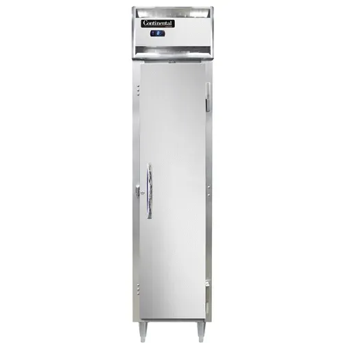 Invest in superior quality with the Continental Refrigerator D1FSENSA Freezer, Reach-In. This designer slim line freezer is perfect for commercial restaurant use. With its narrow full-height solid door and standard depth cabinet, it maximizes storage space while maintaining a sleek and professional appearance. The stainless steel exterior and aluminum interior ensure durability and easy cleaning, while the electronic control with digital display allows for precise temperature management. The hi-low alarm feature alerts you if the temperature goes outside the desired range, ensuring the safety of your food. The 6" stainless steel legs provide stability and make it easy to clean underneath the unit. With a 1/3 HP compressor, this freezer is powerful enough to handle the demands of a busy restaurant kitchen. Trust Continental Refrigerator for reliable and efficient refrigeration solutions.