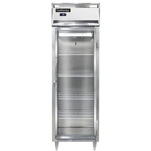 Introducing the Continental Refrigerator D1FSNGD Freezer, Reach-In - the perfect solution to simplify restaurant operations. This designer line freezer is specifically designed for commercial restaurant use, offering a range of features that enhance efficiency and convenience. With its shallow depth cabinet and full-height glass door, you can easily organize and access your frozen goods. The aluminum exterior and interior, along with the stainless steel front, ensure durability and easy cleaning. The electronic control with a digital display allows for precise temperature management, while the hi-low alarm alerts you to any fluctuations. Equipped with a 1/2 HP self-contained refrigeration system, this freezer provides reliable performance. The 6" stainless steel legs offer stability and ease of movement. Certified by cETLus and NSF, you can trust the quality and safety of this product. Upgrade your restaurant's freezer with the Continental Refrigerator D1FSNGD and experience the convenience and efficiency it brings to your operations.