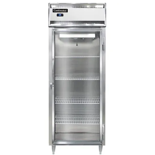 Cooking at its finest begins with the Continental Refrigerator D1RESNGD Reach-In Refrigerator. This designer line wide refrigerator is perfect for commercial restaurant use, offering a spacious one-section design with a shallow depth cabinet. The wide full-height glass door not only provides easy access to your ingredients but also adds a touch of elegance to your kitchen. The aluminum exterior and interior ensure durability and easy cleaning, while the stainless steel front adds a sleek and professional look. With self-contained refrigeration and electronic control with a digital display, you can easily monitor and adjust the temperature to keep your ingredients fresh. The hi-low alarm alerts you if the temperature goes outside the desired range, ensuring food safety. The 6" stainless steel legs provide stability and make cleaning underneath a breeze. With a 1/3 HP compressor, this refrigerator is powerful enough to meet the demands of a busy commercial kitchen. Trust Continental Refrigerator for reliable and efficient refrigeration solutions.