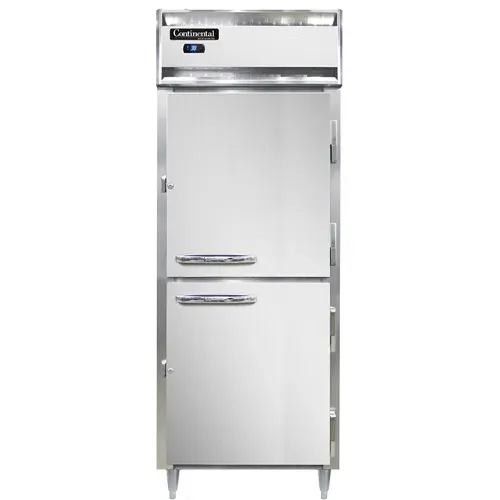 Ignite culinary passion with the Continental Refrigerator D1RESNHD Reach-In Refrigerator. This designer line wide refrigerator is perfect for commercial restaurant use, offering a spacious 28-1/2" width and a shallow depth cabinet. The wide half-height solid doors provide easy access to your ingredients, while the electronic control with digital display allows for precise temperature management. With self-contained refrigeration and a 1/4 HP compressor, this refrigerator ensures efficient cooling and reliable performance. The aluminum exterior and interior, along with the stainless steel front, not only enhance durability but also give a sleek and professional look to your kitchen. Equipped with a hi-low alarm and 6" stainless steel legs, this refrigerator is designed to meet the highest standards of safety and convenience. Made in the USA and certified by cETLus and NSF, the Continental Refrigerator D1RESNHD is the ideal choice for any commercial kitchen seeking quality, reliability, and style.