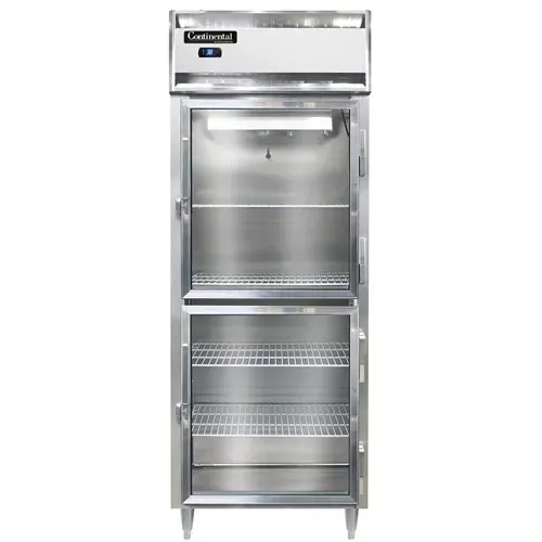 Introducing the Continental Refrigerator D1RESNSSGDHD Reach-In Refrigerator, designed to dominate the culinary world. This wide, one-section refrigerator is part of the Designer Line, boasting a sleek stainless steel exterior and interior that exudes professionalism and durability. The wide half-height glass doors not only provide easy access to your ingredients but also add a touch of elegance to your kitchen. With self-contained refrigeration and electronic control featuring a digital display and hi-low alarm, you can trust that your perishables will be stored at the optimal temperature. The shallow depth cabinet allows for efficient use of space, making it perfect for commercial restaurant settings where every inch counts. Equipped with 6" stainless steel legs and a 1/3 HP compressor, this refrigerator is built to withstand the demands of a busy kitchen. Trust Continental Refrigerator to deliver exceptional quality and performance for your culinary endeavors.