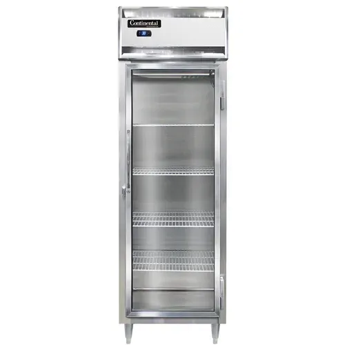 Ignite culinary passion with the Continental Refrigerator D1RNGD Reach-In Refrigerator. This designer line refrigerator is perfect for commercial restaurant use, offering a sleek and modern design that will enhance any kitchen. The one-section, self-contained refrigeration system ensures optimal cooling performance, while the aluminum exterior and interior provide durability and easy maintenance. The stainless steel front adds a touch of elegance and is resistant to corrosion. With a full-height glass door, you can easily see the contents inside without opening the refrigerator, saving energy and time. The electronic control with a digital display allows for precise temperature adjustments, while the hi-low alarm alerts you if the temperature goes outside the desired range. The 6" stainless steel legs provide stability and make cleaning underneath a breeze. Powered by a 1/3 HP motor, this refrigerator is both efficient and reliable. Trust Continental Refrigerator for all your commercial refrigeration needs.