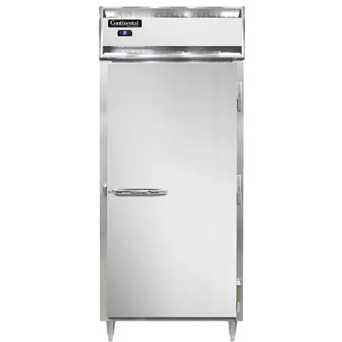 Serve with pride with the Continental Refrigerator D1RXSNSA Reach-In Refrigerator. This designer line extra-wide refrigerator is perfect for commercial restaurant use. With its shallow depth cabinet and wide full-height solid door, it provides ample storage space while saving valuable kitchen space. The stainless steel exterior and aluminum interior ensure durability and easy cleaning, while the electronic control with digital display allows for precise temperature management. The hi-low alarm feature alerts you if the temperature goes outside the desired range, ensuring the freshness and safety of your ingredients. The 6" adjustable stainless steel legs provide stability and flexibility in positioning the refrigerator. Made in the USA and certified by cETLus and NSF, this refrigerator is a reliable and high-quality choice for any commercial kitchen. Trust Continental Refrigerator for all your refrigeration needs.