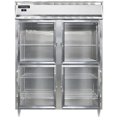 Maximize your food service potential with the Continental Refrigerator D2RENSGDHD Reach-In Refrigerator. This designer line wide refrigerator is perfect for commercial restaurant use, offering a spacious 57"W two-section cabinet with wide half-height sliding glass doors. The self-contained refrigeration system ensures optimal temperature control, while the aluminum exterior and interior provide durability and easy cleaning. The stainless steel front adds a sleek and professional look to your kitchen. With electronic control and a digital display, you can easily monitor and adjust the temperature as needed. The hi-low alarm alerts you if the temperature goes outside the desired range, ensuring the safety of your food. The 6" stainless steel legs provide stability and make it easy to clean underneath the unit. With a 1/2 HP compressor, this reach-in refrigerator is powerful and efficient. Trust Continental Refrigerator for reliable and high-quality refrigeration solutions in your commercial kitchen.