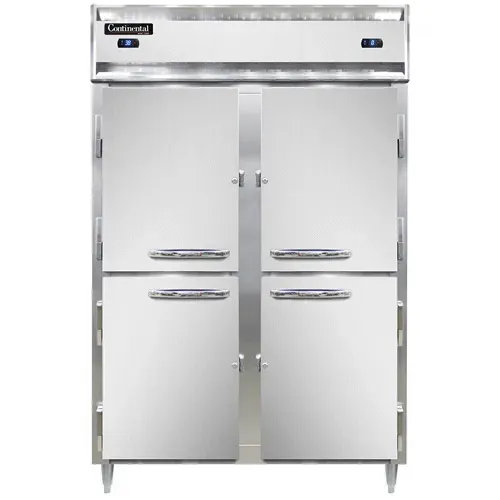 Fuel your passion for cooking with the Continental Refrigerator D2RFNSAHD Reach-In Refrigerator Freezer. This designer line refrigerator/freezer is perfect for commercial restaurant use. With its stainless steel exterior and aluminum interior, it not only looks sleek but is also durable and easy to clean. The standard depth cabinet and narrow half-height solid doors make it a space-saving solution for any kitchen. The electronic control with a digital display allows for precise temperature management, while the hi-low alarm ensures that your food stays at the optimal temperature at all times. The dual 1/4 & 1/3 HP compressors provide efficient cooling and ensure that both the refrigerator and freezer sections maintain their desired temperatures. Made in the USA and certified by cETLus and NSF, this Continental Refrigerator is a reliable and high-quality addition to any commercial kitchen.