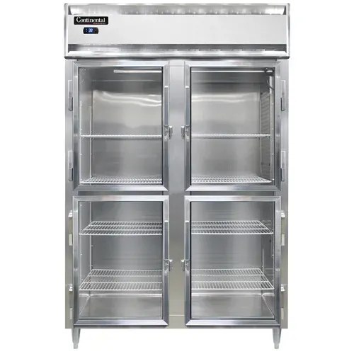 Master the art of flavor with the Continental Refrigerator D2RNSAGDHD Reach-In Refrigerator. This designer line refrigerator is perfect for commercial restaurant use, offering a spacious two-section layout and self-contained refrigeration for optimal food storage. The stainless steel exterior not only adds a sleek and professional look to your kitchen but also ensures durability and easy cleaning. Inside, the aluminum interior provides a hygienic and corrosion-resistant surface. With half-height glass doors, you can easily see and access your ingredients without compromising temperature control. The electronic control with a digital display allows for precise temperature adjustments, while the hi-low alarm alerts you if the temperature deviates from the set range. Equipped with 6" stainless steel legs, this refrigerator is stable and easy to move for cleaning purposes. With a 1/2 HP compressor, this unit provides reliable cooling power. Trust in the Continental Refrigerator D2RNSAGDHD to elevate your culinary creations and keep your ingredients fresh.