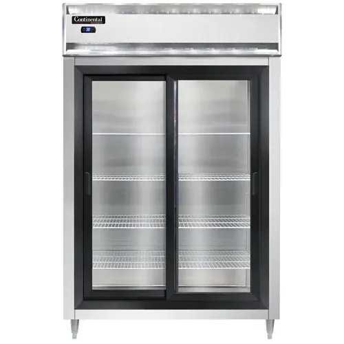 Realize kitchen dreams with the Continental Refrigerator D2RNSASGD Reach-In Refrigerator. This designer line refrigerator is perfect for commercial restaurant use, offering a spacious and efficient storage solution. With its two-section design and full-height sliding glass doors, you can easily access and display your food items. The stainless steel exterior not only adds a sleek and professional look to your kitchen but also ensures durability and easy cleaning. Inside, the aluminum interior provides excellent insulation and corrosion resistance. The electronic control with a digital display allows you to easily monitor and adjust the temperature, while the hi-low alarm alerts you if the temperature goes out of range. The 6" stainless steel legs provide stability and make cleaning underneath a breeze. With a 1/2 HP compressor, this refrigerator delivers powerful and reliable performance. Trust Continental Refrigerator to meet all your commercial refrigeration needs.