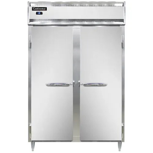 Unleash your kitchen's potential with the Continental Refrigerator D2RSNSA* Reach-In Refrigerator. This designer line refrigerator is perfect for commercial restaurant use, offering a spacious two-section design with self-contained refrigeration. The stainless steel exterior and aluminum interior ensure durability and easy cleaning, while the stainless steel front and full-height doors add a touch of elegance. The shallow depth cabinet allows for efficient use of space, making it ideal for busy kitchens. With electronic control and a digital display, you can easily monitor and adjust the temperature to keep your ingredients fresh. The hi-low alarm alerts you if the temperature goes outside the desired range, ensuring food safety. The 6" stainless steel legs provide stability and make cleaning underneath a breeze. Powered by a 1/3 HP motor, this refrigerator is both efficient and reliable. Made in the USA and certified by cETLus and NSF, you can trust the quality and performance of this Continental Refrigerator. Upgrade your kitchen with the D2RSNSA* Reach-In Refrigerator and experience the difference it makes in your restaurant's efficiency and productivity.