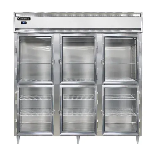 Fuel your passion for cooking with the Continental Refrigerator D3RNGDHD Reach-In Refrigerator. This designer line refrigerator is perfect for commercial restaurant use, offering a spacious three-section layout to accommodate all your ingredients and supplies. The self-contained refrigeration system ensures optimal temperature control, while the aluminum exterior and interior provide durability and easy cleaning. The stainless steel front adds a sleek and professional touch to your kitchen. With half-height glass doors, you can easily see and access your items without compromising on energy efficiency. The electronic control with a digital display allows for precise temperature adjustments, and the hi-low alarm ensures that your perishable goods are always stored at the right conditions. The 6" stainless steel legs provide stability and make cleaning underneath a breeze. With a powerful 1 HP motor, this refrigerator is built to handle the demands of a busy commercial kitchen. Trust Continental Refrigerator for reliable and efficient refrigeration solutions.