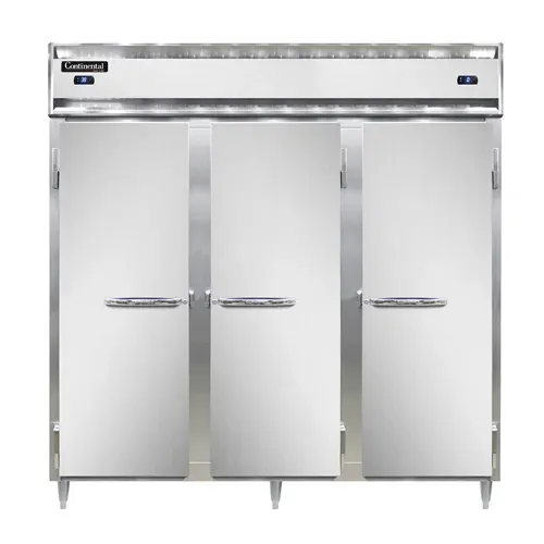 Boost your restaurant's performance with the Continental Refrigerator D3RRFNSA Refrigerator Freezer. This designer line reach-in unit is perfect for commercial restaurant use. With its stainless steel exterior and aluminum interior, it not only looks sleek but is also durable and easy to clean. The standard depth cabinet and narrow full-height solid doors maximize space efficiency in your kitchen. The electronic control with a digital display allows for precise temperature management, while the hi-low alarm ensures food safety. Equipped with dual 1/3 & 1/3 HP compressors, this refrigerator freezer provides reliable cooling and freezing capabilities. It is cETLus and NSF certified, guaranteeing its quality and compliance with industry standards. Made in the USA, this Continental Refrigerator is a reliable and authentic choice for any commercial kitchen. Upgrade your restaurant's refrigeration system with the D3RRFNSA and experience enhanced efficiency and performance.
