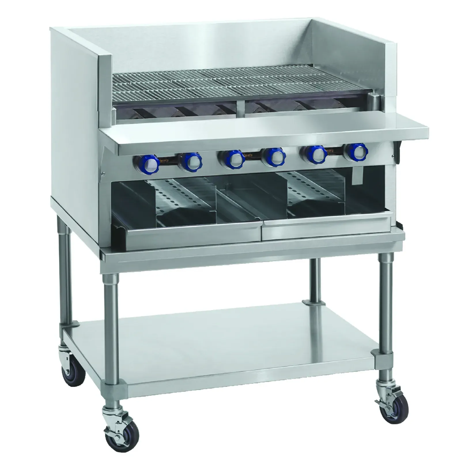Ignite culinary passion with the Imperial IABA-72 Gas Countertop Charbroiler. This high-quality charbroiler is designed to meet the demands of commercial restaurant kitchens. With its 72-inch size and 13 stainless steel burners, it provides ample cooking space and powerful heat distribution. The cast iron radiants and grates ensure even heat distribution and excellent heat retention, resulting in perfectly cooked and flavorful dishes every time. The smoke system with four log holders adds a smoky flavor to your grilled creations, enhancing the taste and appeal of your menu items. The full-width grease gutter, removable grease can, and water pans make cleaning a breeze, ensuring a hygienic cooking environment. Made with durable stainless steel, this charbroiler is built to withstand the rigors of a busy kitchen. With a whopping 260,000 BTU, this charbroiler delivers exceptional performance and efficiency. Trust Imperial for top-notch quality and reliability in your commercial kitchen.