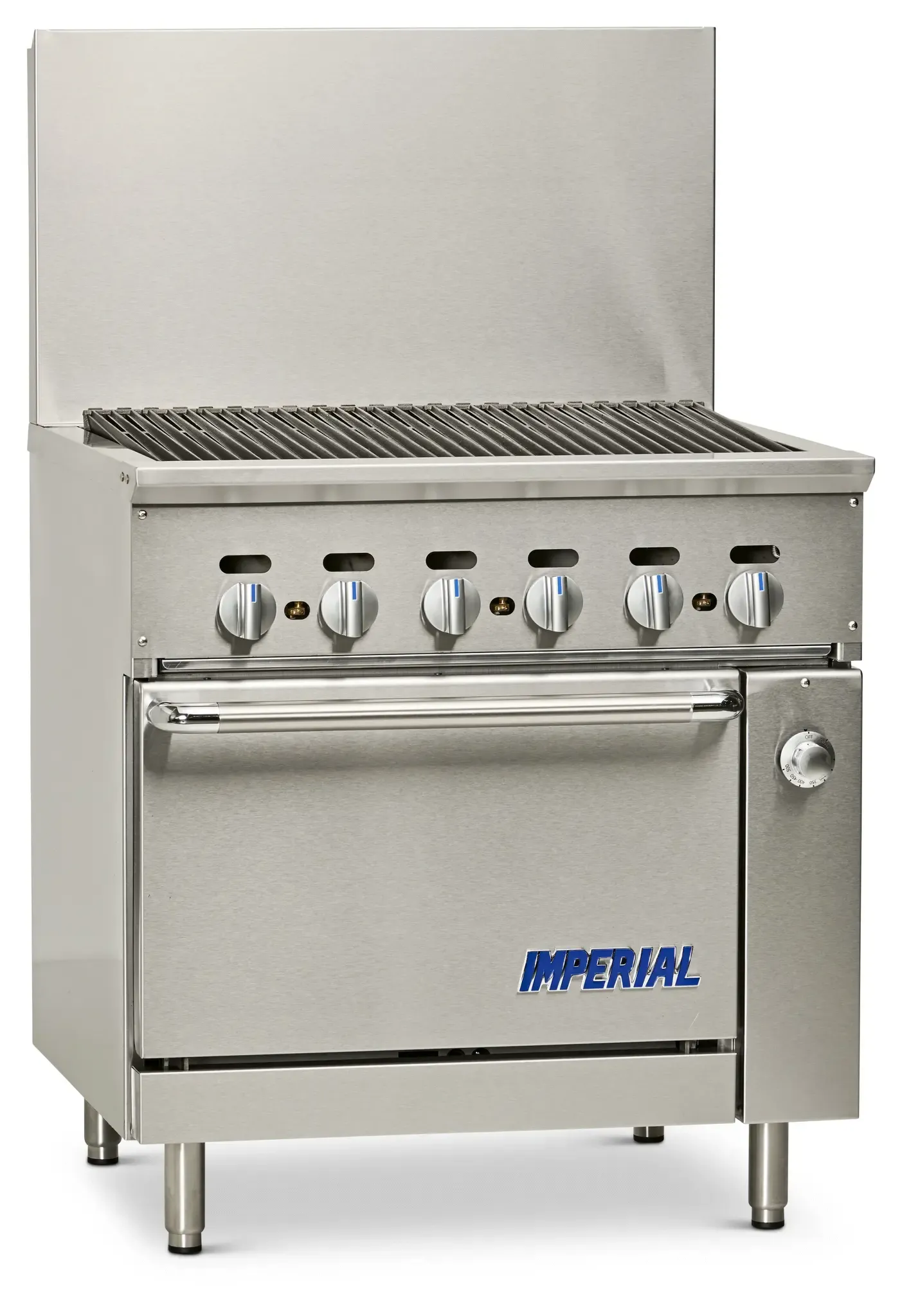 Fuel your passion for cooking with the Imperial IR-36BR-126 Range. This 36" gas range is a perfect match for any commercial restaurant. It features a powerful 125,000 BTU burner that ensures quick and efficient cooking. The cast iron radiants and top grates provide even heat distribution, resulting in perfectly charbroiled dishes every time. The range also includes a standard oven with a chrome rack, allowing you to bake and roast with ease. The stainless steel front, sides, and high backguard not only give the range a sleek and professional look but also make it durable and easy to clean. The grease trough and removable drip pan make maintenance a breeze. With adjustable feet and a landing ledge, this range offers convenience and versatility. Trust Imperial, a trusted name in the industry, to deliver a high-quality range that will elevate your restaurant's cooking capabilities.