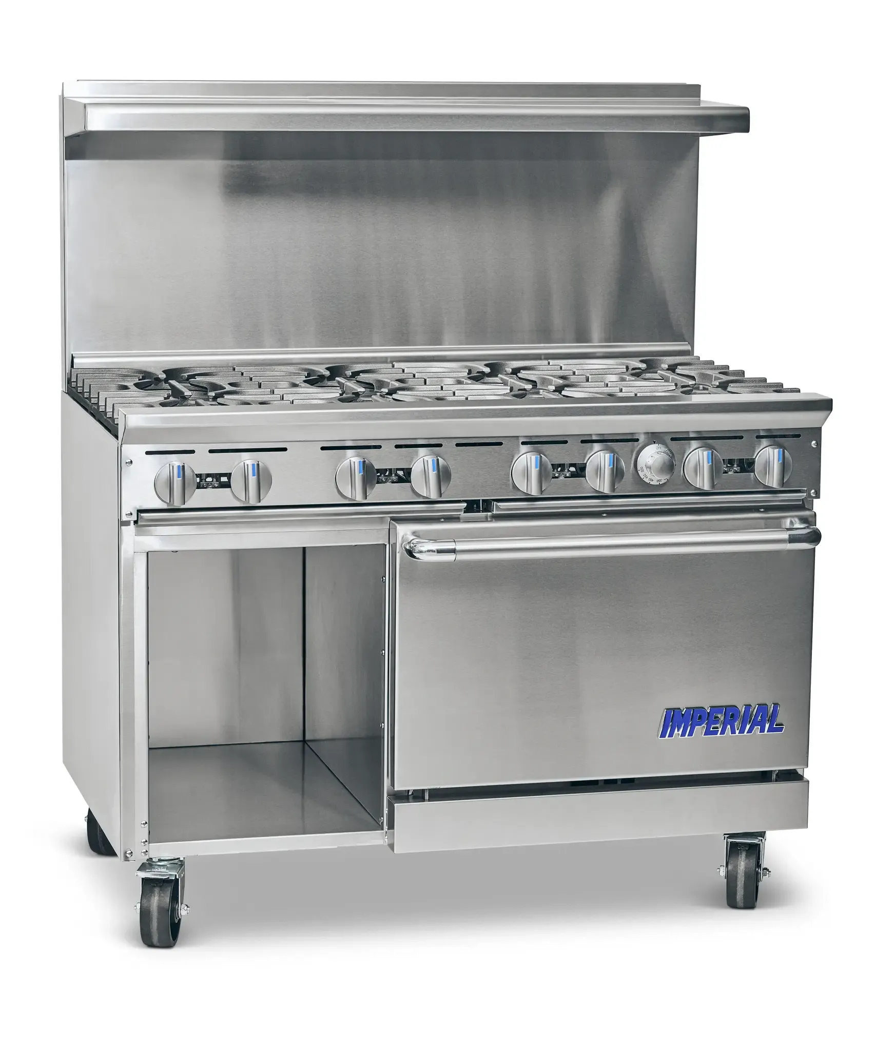 Culinary excellence in every dish starts with the Imperial IR-6-G12 Range. This 48" gas restaurant range is designed to meet the demands of a busy commercial kitchen. With six open burners and a 12" griddle, you have the versatility to cook a variety of dishes simultaneously. The two space saver ovens provide ample cooking space, each equipped with a chrome rack for easy organization. The stainless steel construction of the front, sides, backguard, shelf, landing ledge, and kick plate ensures durability and easy cleaning. The 3" grease trough, removable grease can, and crumb tray make maintenance a breeze. With 266,000 BTU of power, this range delivers exceptional performance. It is NSF, CE, CSA Flame, and CSA Star certified, guaranteeing its safety and reliability. Upgrade your restaurant kitchen with the Imperial IR-6-G12 Range and elevate your culinary creations.