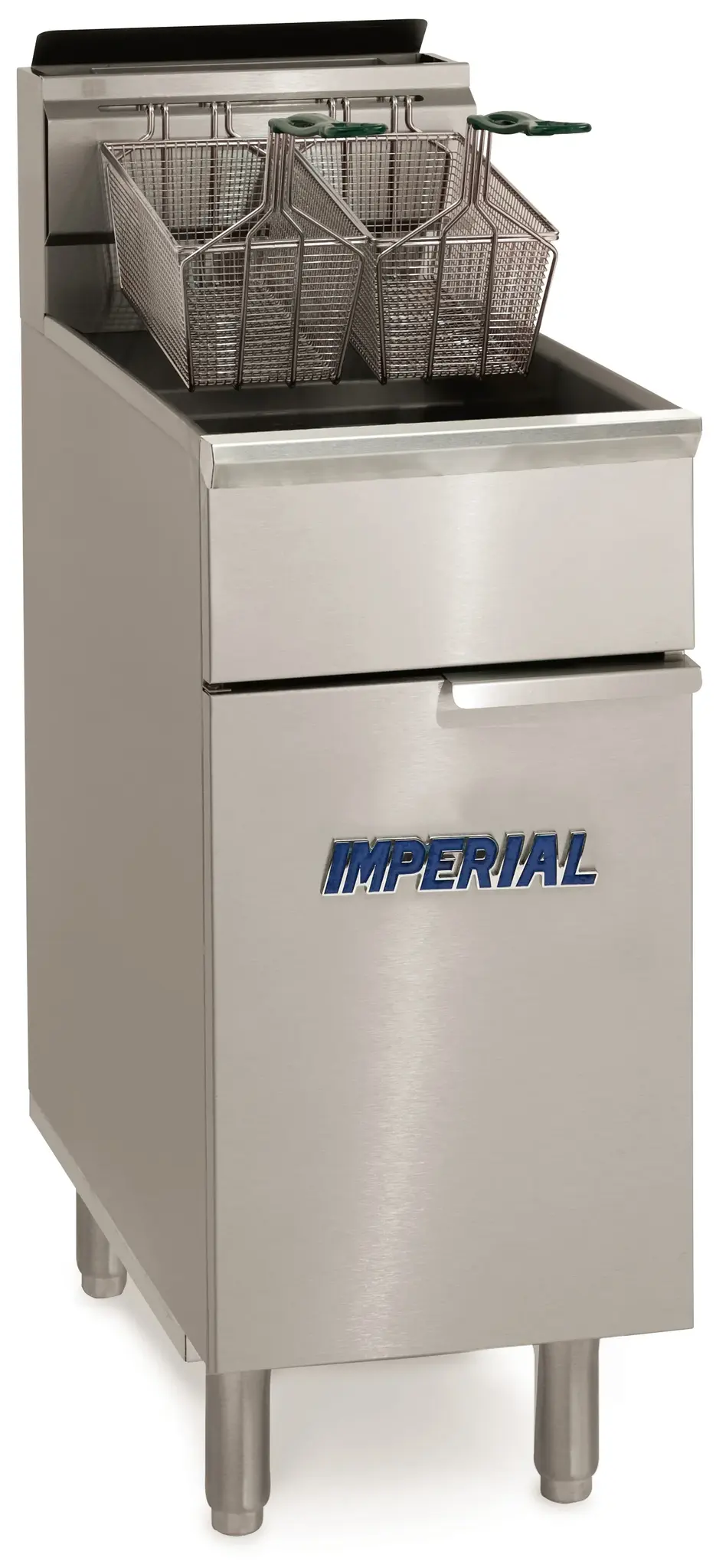 Streamline your restaurant cooking operations with the Imperial IRF-50 Fryer. This gas floor model fryer is designed to meet the demands of a busy commercial kitchen. With a 50lb. capacity and tube fired burners, this fryer can handle high-volume frying with ease. The snap action thermostat and millivolt controls ensure precise temperature control, allowing you to achieve perfect results every time. The stainless steel fry pot, front, door, sides, and basket hangers are not only durable but also easy to clean, saving you time and effort. The fryer comes with a wire mesh crumb screen and two nickel-plated baskets, providing convenience and efficiency. With 6" legs for stability and a powerful 140000 BTU, this NSF, CE, and CSA certified fryer is a reliable addition to any commercial kitchen. Upgrade your frying capabilities with the Imperial IRF-50 Fryer.