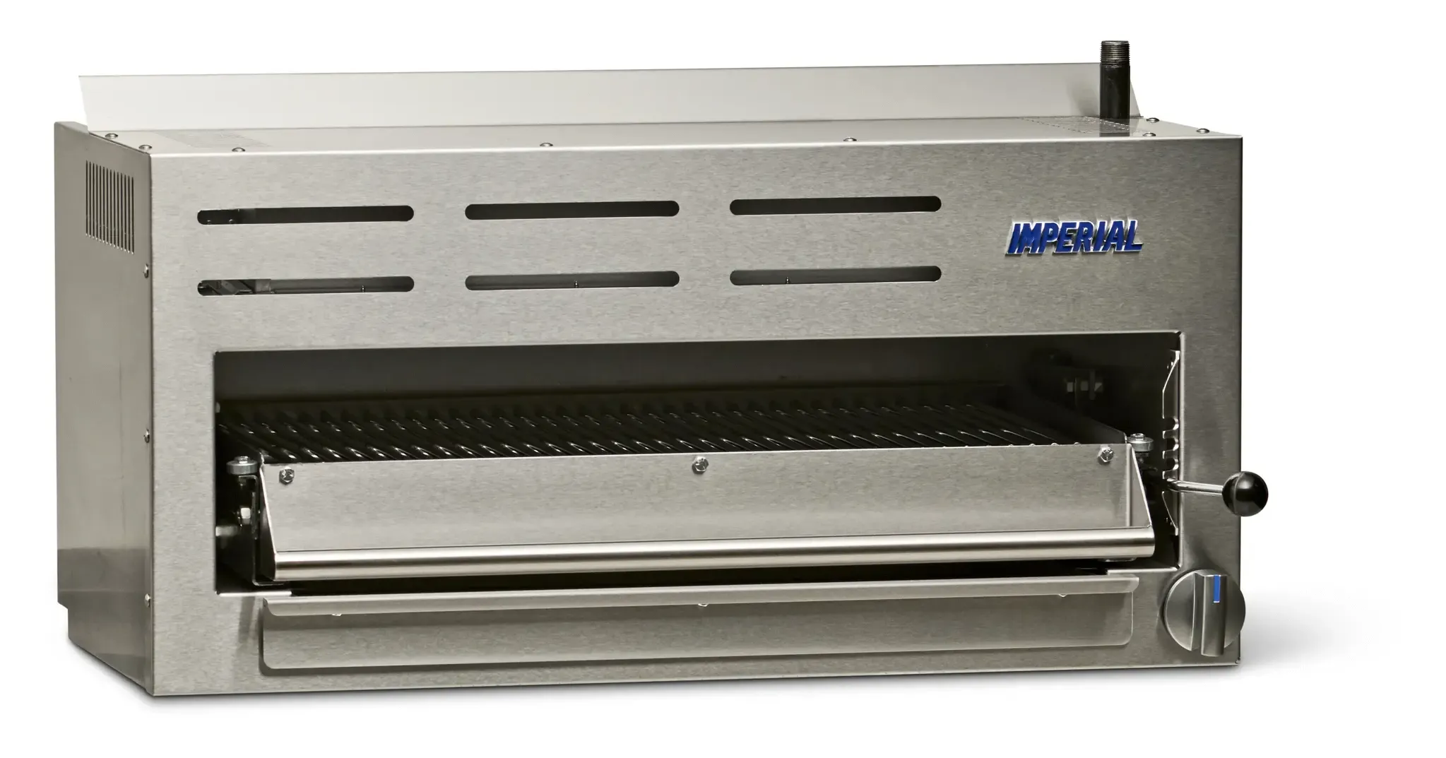 Elevate your restaurant' s productivity with the Imperial Professional Salamander Broiler. Designed to meet the high demands of a bustling kitchen, this broiler boasts a powerful 40,000 BTU infra-red single control burner, ensuring consistent and efficient cooking. The protective screen covering the burner enhances safety, making it a reliable choice for any professional setting. The Imperial Professional Salamander Broiler is engineered for ease of use and versatility. Its spring-balanced mechanism allows for effortless maneuvering, while the four locking positions provide precise control over cooking intensity. The rack assembly rolls out smoothly, granting easy access to your culinary creations and streamlining the cooking process. Model IRSB-36 stands out with its robust construction and user-friendly features, making it an indispensable asset in any restaurant kitchen. Whether you' re broiling, caramelizing, or finishing dishes, this broiler delivers exceptional performance every time. Upgrade your kitchen with the Imperial Professional Salamander Broiler and experience the perfect blend of power, precision, and convenience.