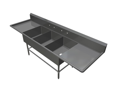 Modernize operations with versatile choices using the John Boos, 43PB18-2D24, Sink, (3) Three Compartment. This commercial-grade sink is designed to meet the demands of a busy restaurant kitchen. With its 3-compartment design, it offers ample space for washing, rinsing, and sanitizing dishes, utensils, and cookware. The 18W x 18 front-to-back x 12 deep compartments are perfect for accommodating large pots and pans. The sink also features 2 drainboards, providing additional workspace for food preparation or drying dishes. Made of durable 14300 stainless steel, this sink is built to withstand the rigors of a commercial kitchen. The adjustable front and side bracing, along with the stainless steel legs and bullet feet, ensure stability and easy leveling. NSF and CSA-Sanitation certified, this sink guarantees hygiene and safety. Upgrade your restaurant's efficiency and cleanliness with the John Boos, 43PB18-2D24, Sink, (3) Three Compartment.