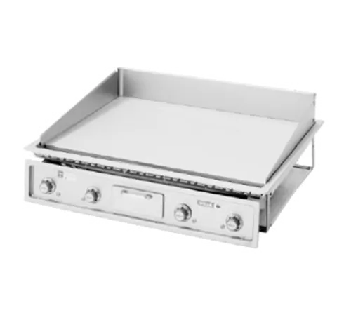 Wells G-236 Electric Built-In/Drop-In Griddle is ideal for any commercial kitchen based on their versatile, easy-to-use design. It features removable splash guards for easy clean, positive-off thermostats that allow for individual zone temperature control. Enclosed tubular elements are clamped onto the bottom of the griddle plate for even heat distribution over the entire surface. 4-Quart capacity, removable front grease drawer, protective guard rings to protect the controls, and features Wellsloks for quick and easy installation. 34"W x 24"D cooking surface, 208V