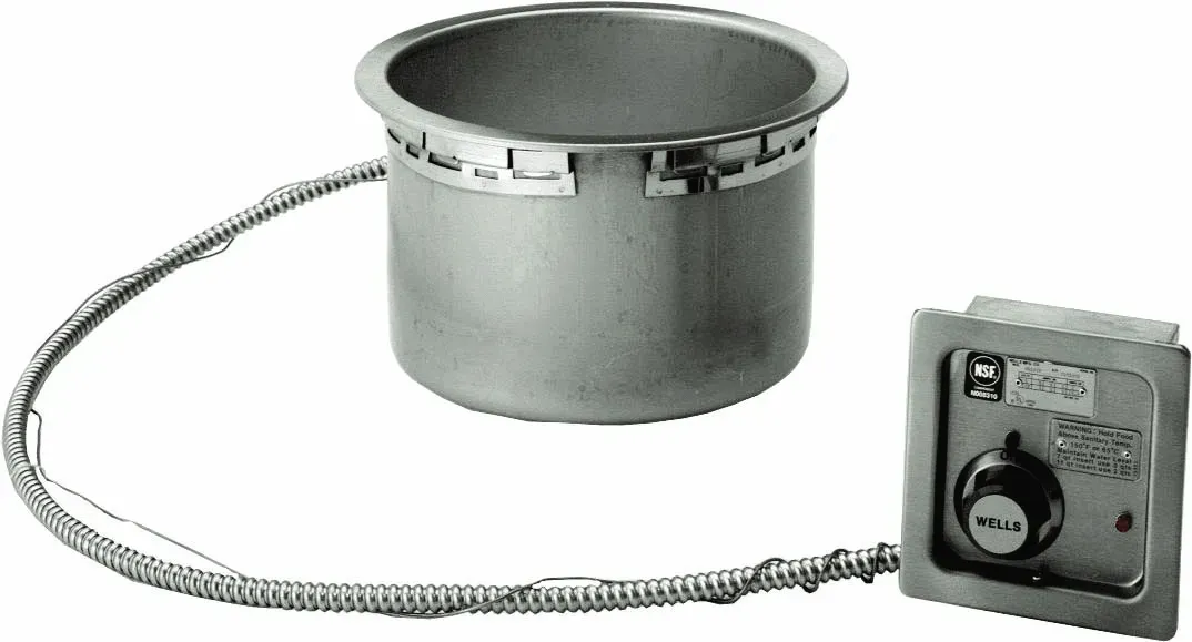 Wells HW-106D Cook & Hold Top-Mount Warmers are designed to quickly heat refrigerated foods and hold heated foods at safe and fresh serving temperatures. Accommodate one 11-quart round inset pan or equivalent fractional inset pans. These are designed for wet operation only. Powerful tubular heating elements are submerged inside the well for maximum temperature transfer. One-piece stainless steel top flange and heavy gauge, deep-drawn stainless steel warming pans, WellsLoks, and individual thermostatic controls for each well are standard features. 120V